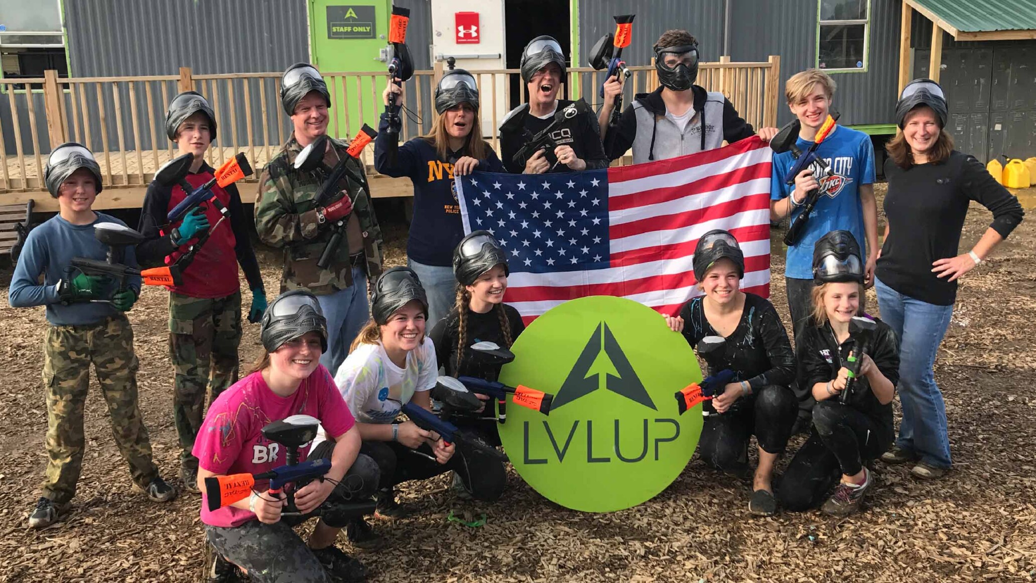 - 2-Hours of Private Games for up to 10 players included! Additional players just $35 each (includes rentals + 200 rds).We have over ten playing fields at LVL UP. Your group will play a game on one map, reload, then go to another map for a second game... repeating all event long!